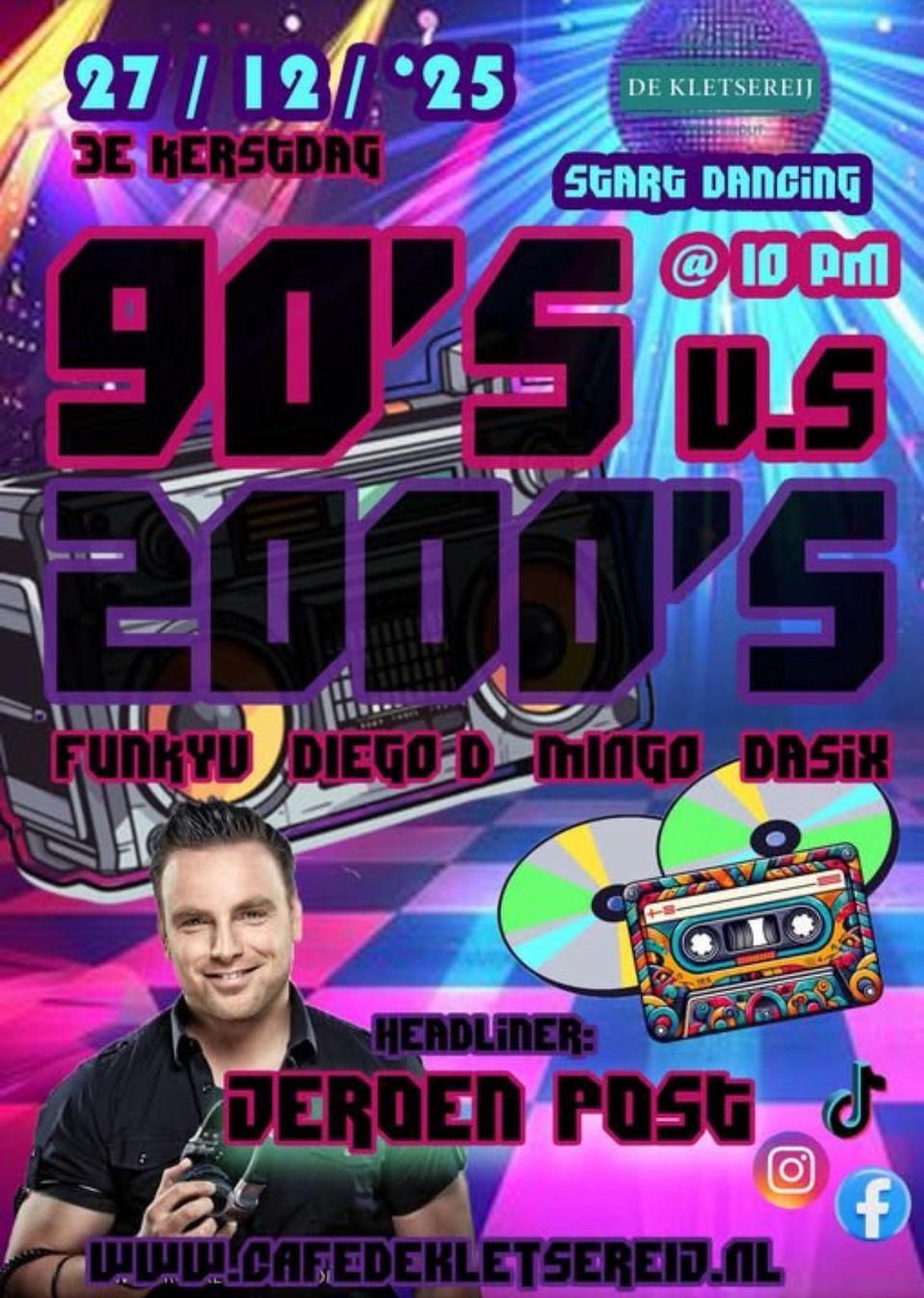 Op zaterdag 27 december duik je in de ultieme 90's en 00's vibe met maar liefst vijf dj's, waaronder headliner Jeroen Post
