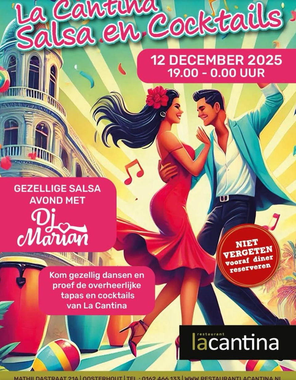 Vrijdag 12 december verandert La Cantina in een tropische dansspot. Twee dansvloeren, DJ Marian en héél veel goede vibes. Tip, reserveer vooraf als je ook wilt dineren.